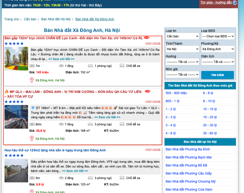 Luôn xuất hiện đầu danh sách nhà đất theo Phường/Xã.