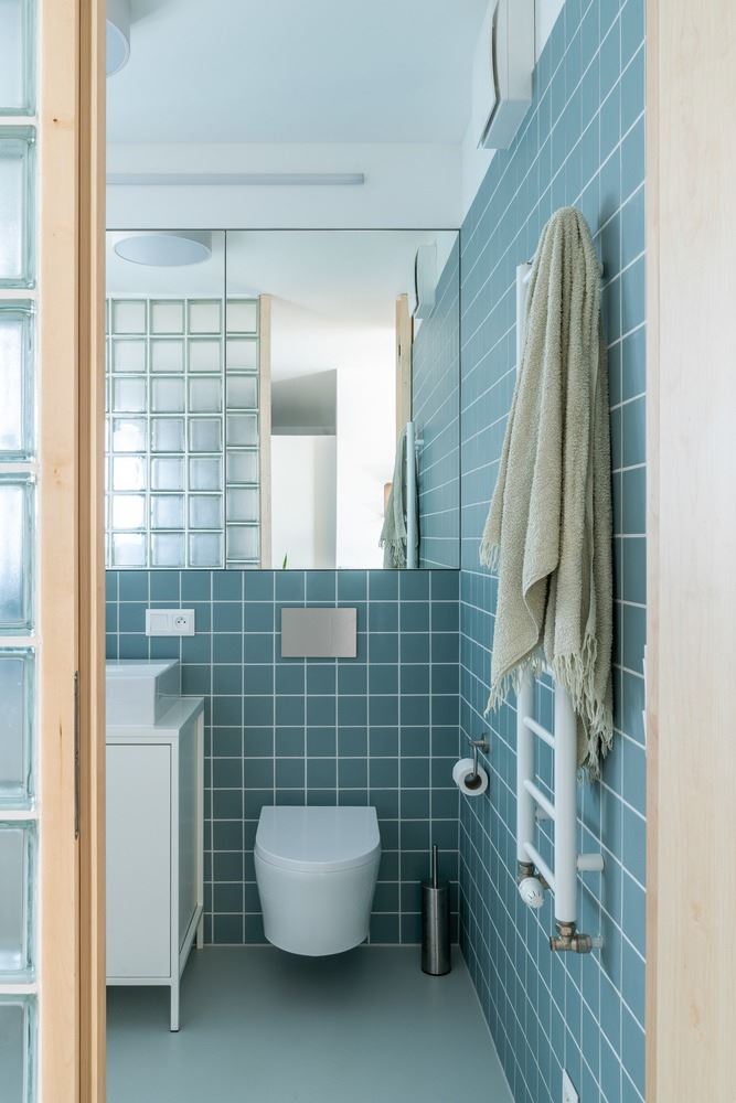 Nhà vệ sinh tích hợp trong phòng tắm là giải pháp tái cấu trúc giúp tối ưu diện tích sinh hoạt chung trong Apartment B