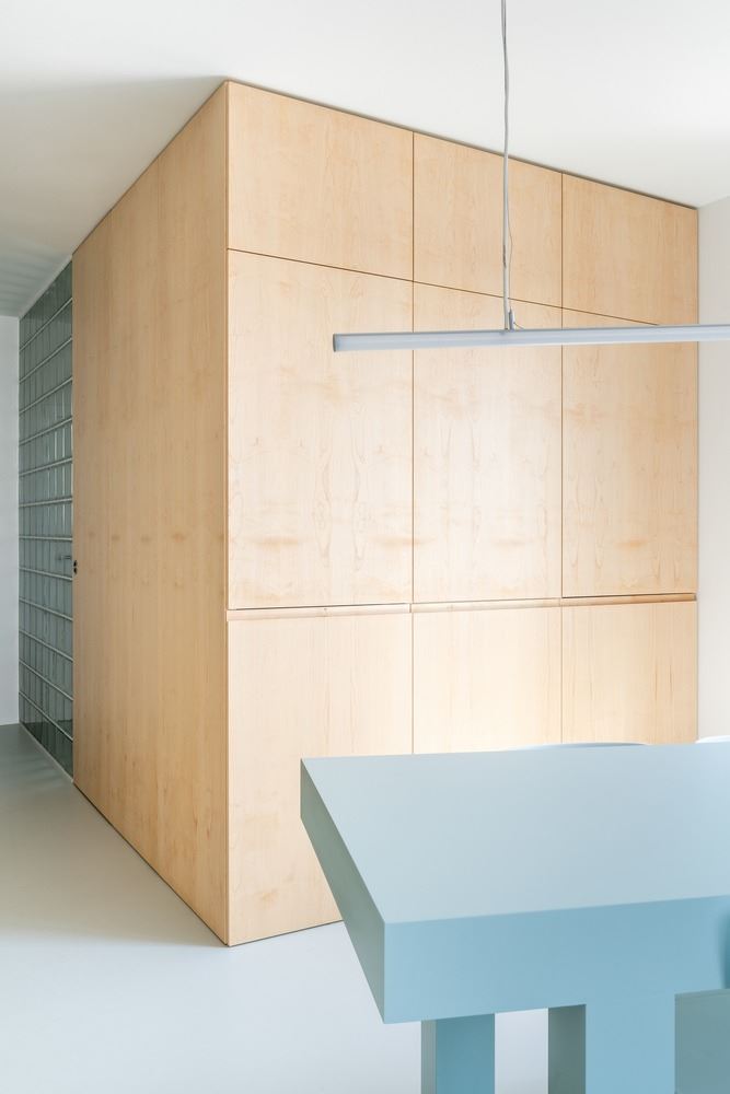 Điểm nhấn đầu tiên của dự án Apartment B chính là cách kiến trúc sư xử lý không gian bằng các “khối vật liệu” đặt rời rạc trong căn hộ. Các khối này không chạm tới trần hoặc lệch khỏi sàn, tạo nên cảm giác thoáng đãng, cho phép không khí và ánh sáng di chuyển tự do.